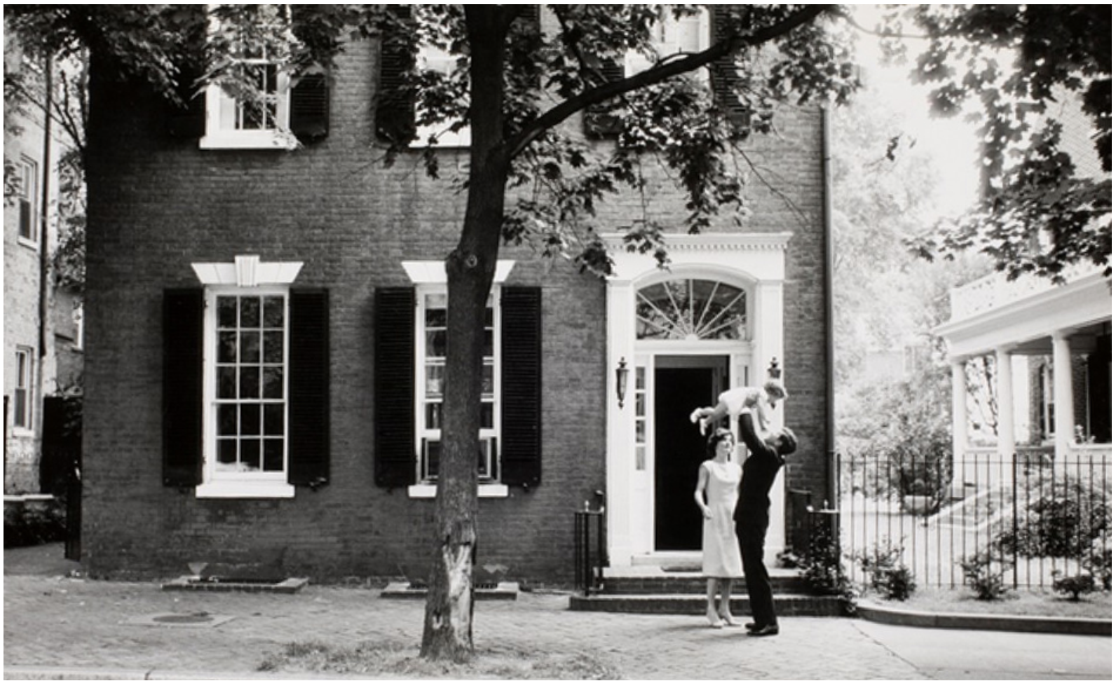 JFK, Jackie and Caroline in front of their house. Photo from dmarlin.com.
