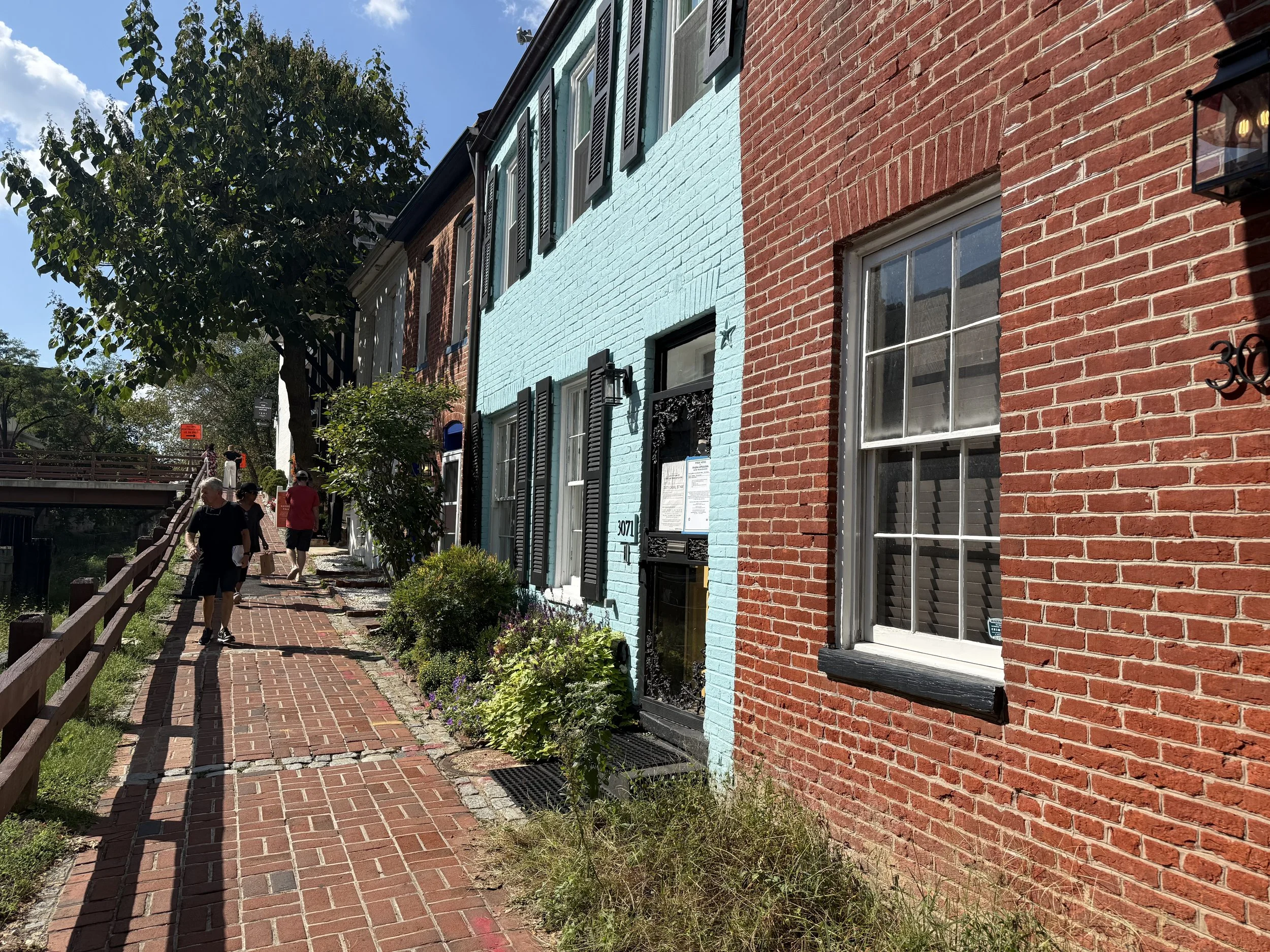 You’ll see lots of rowhouses from the 18th and 19th centuries. Rowhouses are attached homes that were built in rapidly expanding cities to maximize the use of space. This street was home to the working class of Georgetown. It is especially charming at night, but the rowhouses look like they could use some TLC during the day.